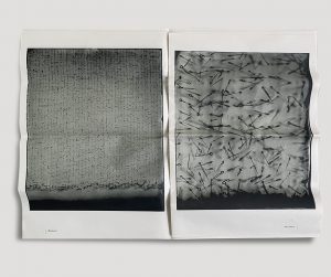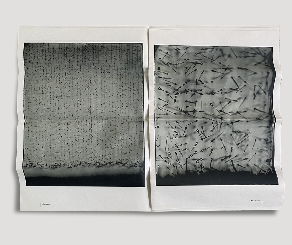 Le journal prolonge l’expérience. Imprimé en noir et blanc, au format et sur papier journal, sans texte, il déploie les images comme une suite ouverte. Douze pages. Douze variations : une lecture sans mesure, où le regard circule librement.